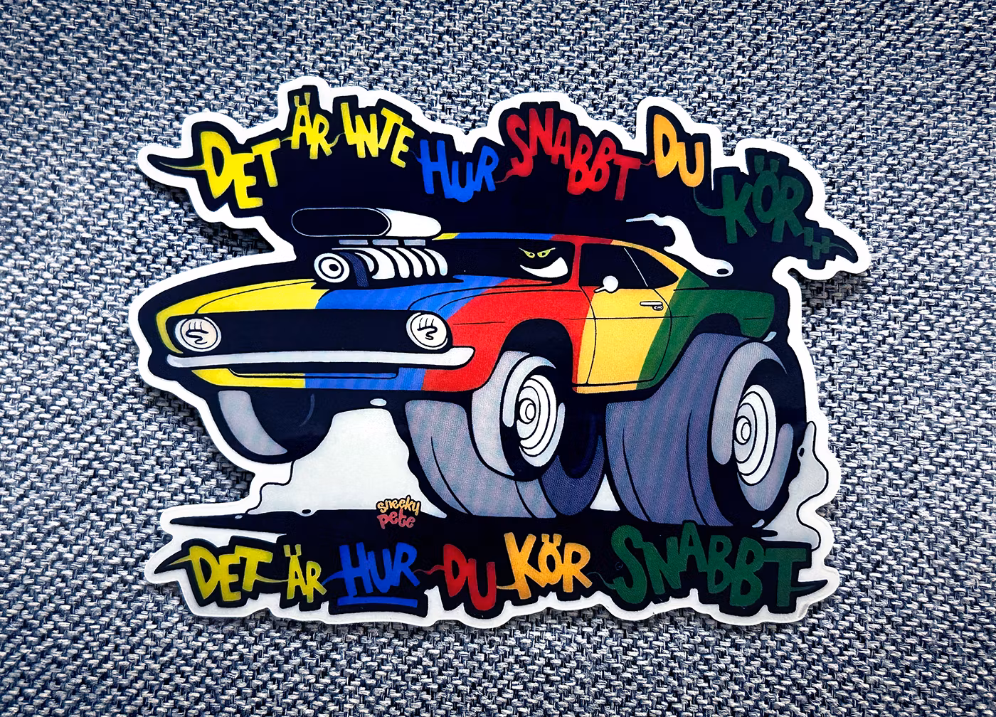 Nyckelord: Muskelbil, stil, klass, Veteranbil, klistermärke, dekal