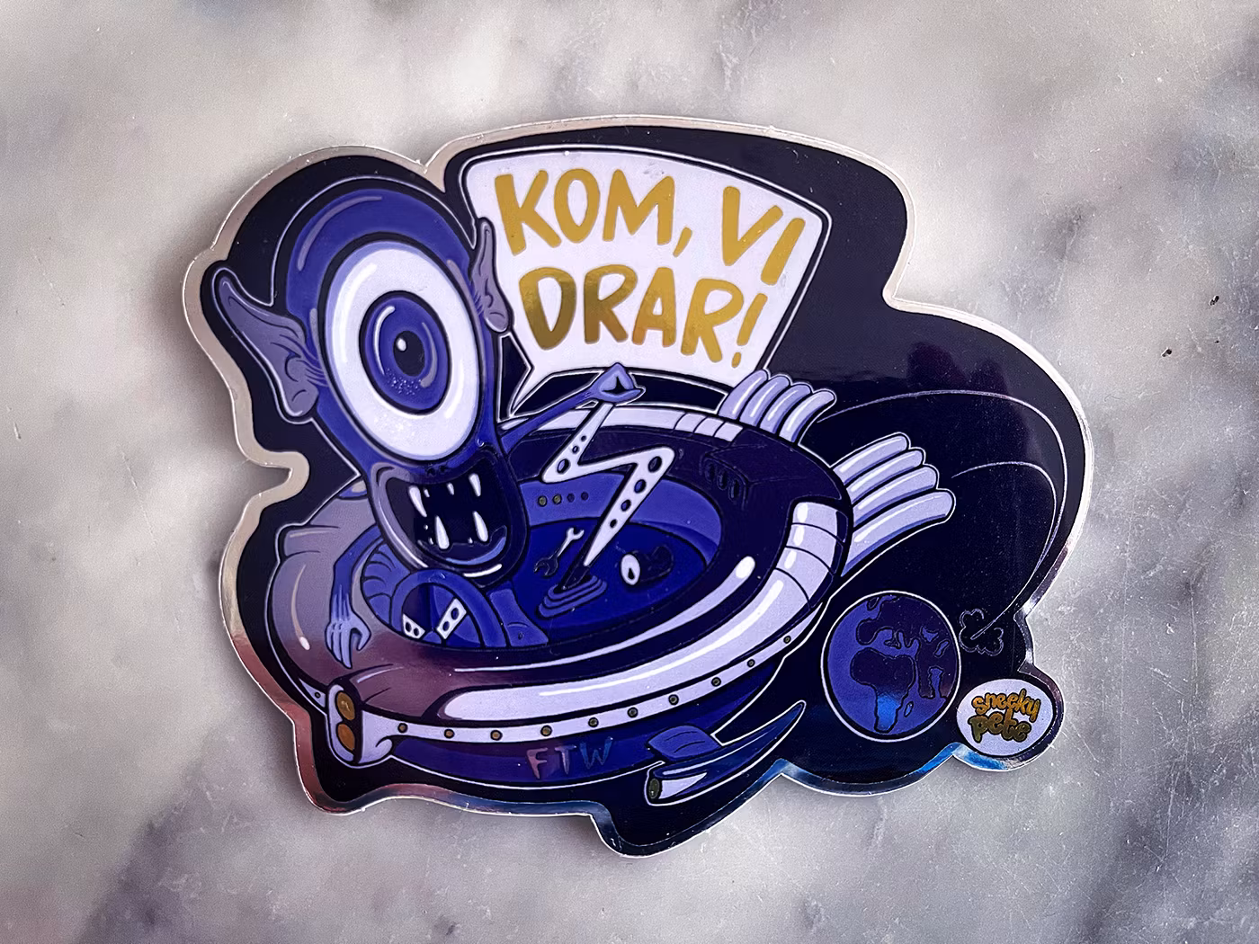 Nyckelord: Alien, rymdvarelse, lowbrow, Cyklop, kustom kulture, custom, kustom, klistermärke, dekal