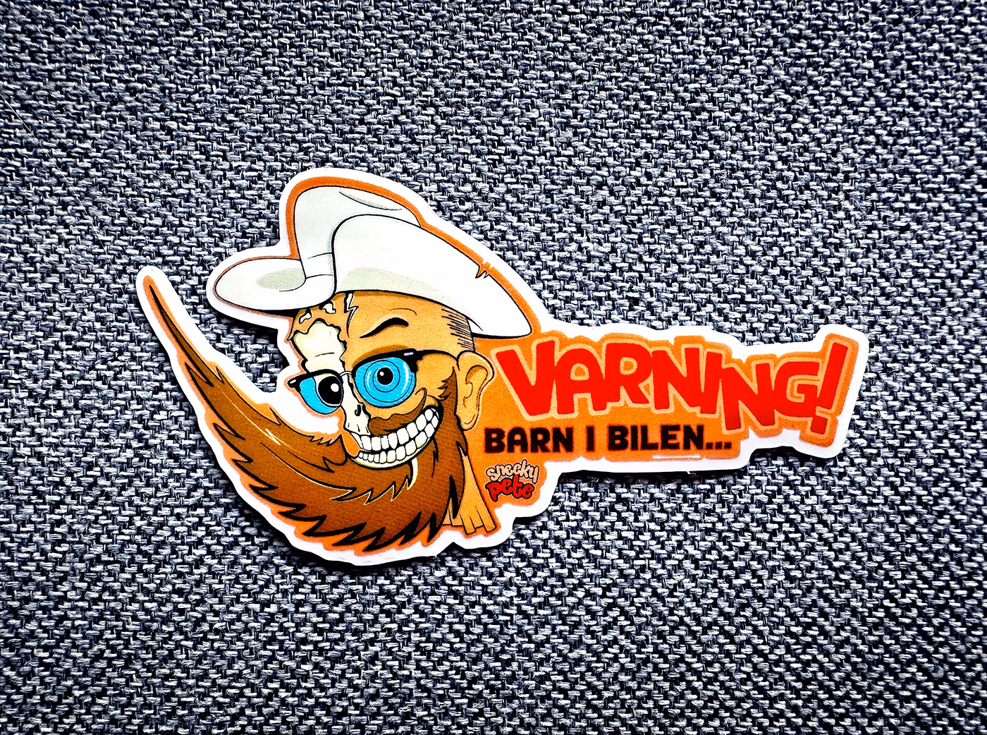 Nyckelord: Magnus och Brasse, Varning för barn, Varning, Barn i bilen, Varning, barn i bilen, Vuxen nog att vara barnslig, klistermärke, dekal